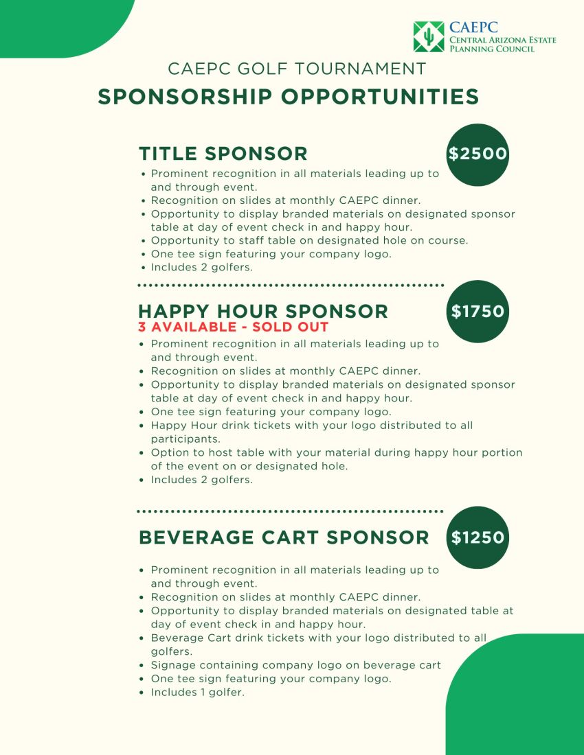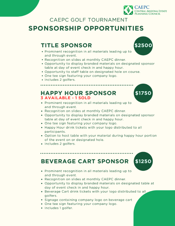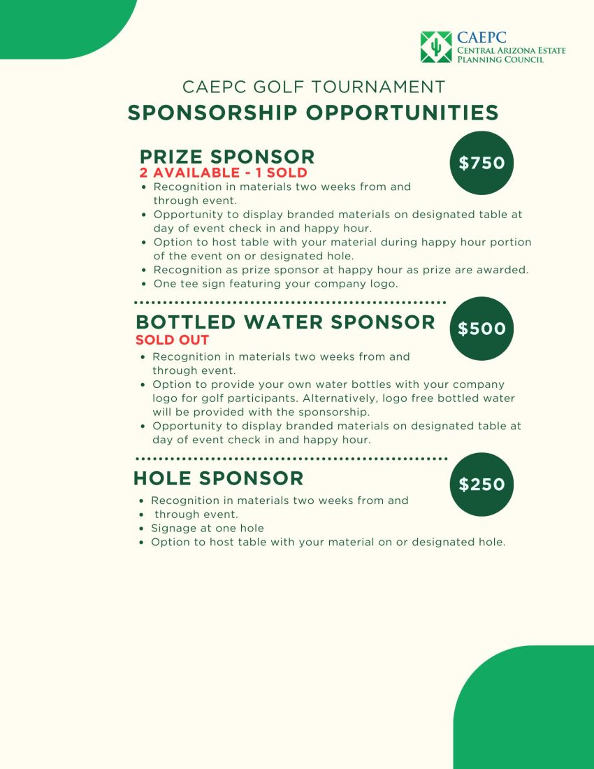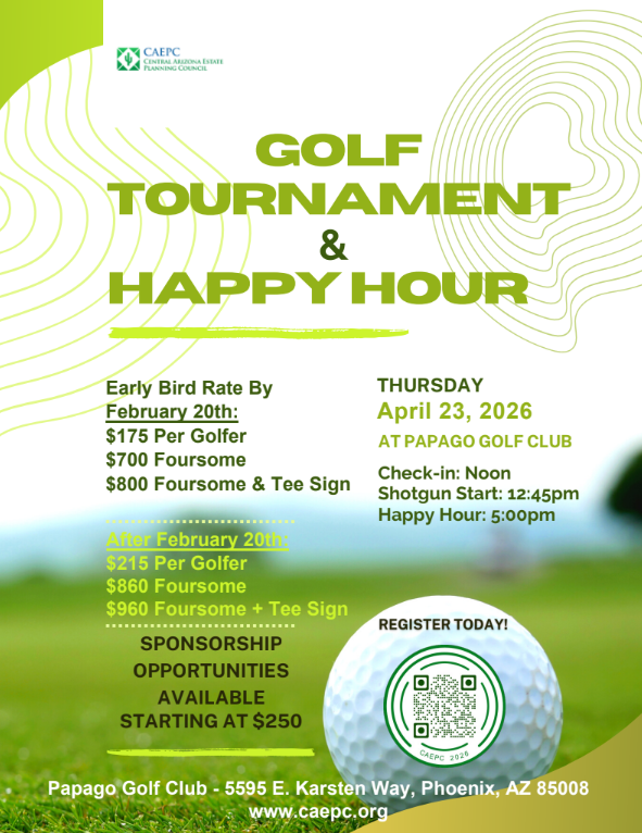 By registering for this event, you grant the Central Arizona Estate Planning Council (CAEPC) permission to take photographs or video of you during the event. These images and videos may be used on the CAEPC website, social media pages, and/or in newsletters for promotional purposes.